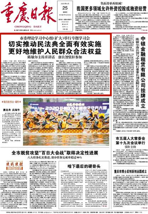 市委理论学习中心组(扩大)举行专题学习会 切实推动民法典全面有效实施 更好地维护人民群众合法权益 陈敏尔主持并讲话 唐良智张轩参加