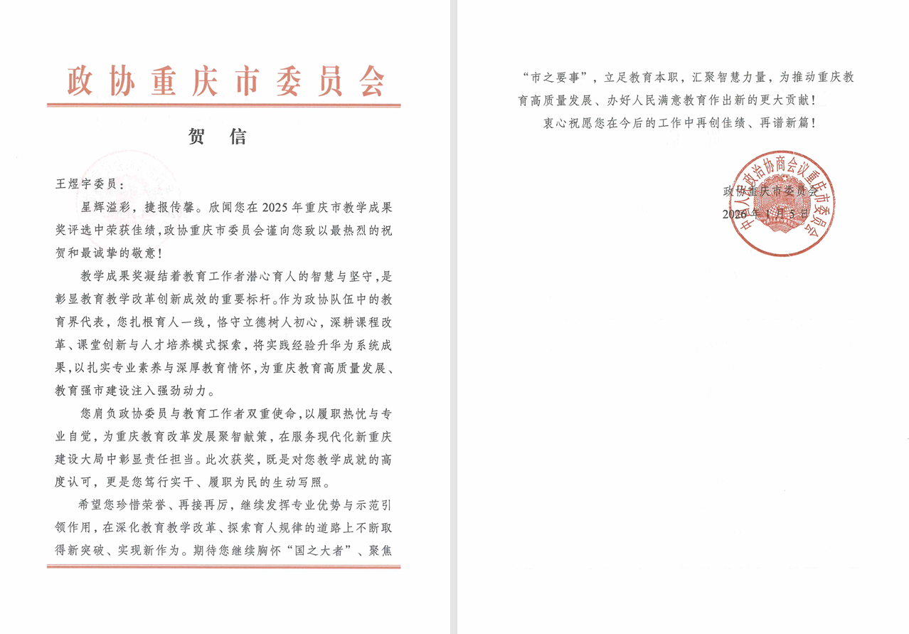 市政协发贺信肯定我校教授在教学改革中的育人新路径探索