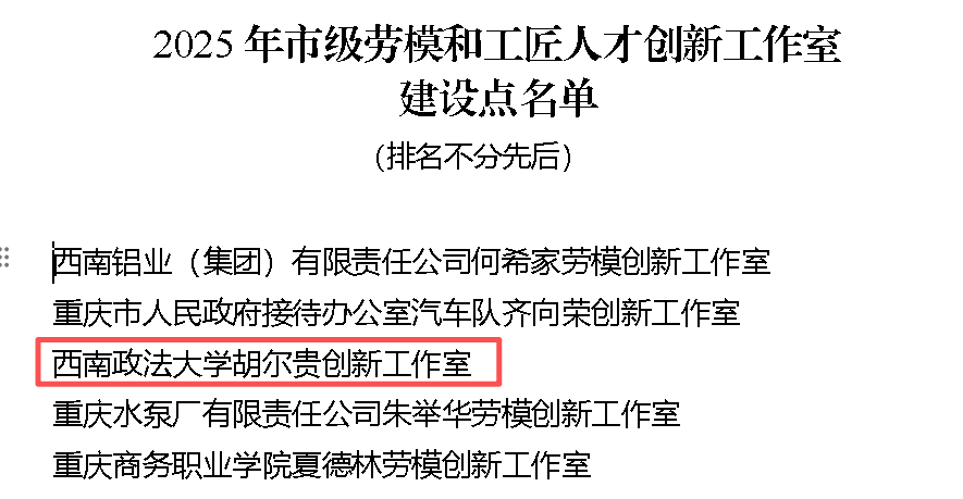 名单出炉!西政这个工作室榜上有名!
