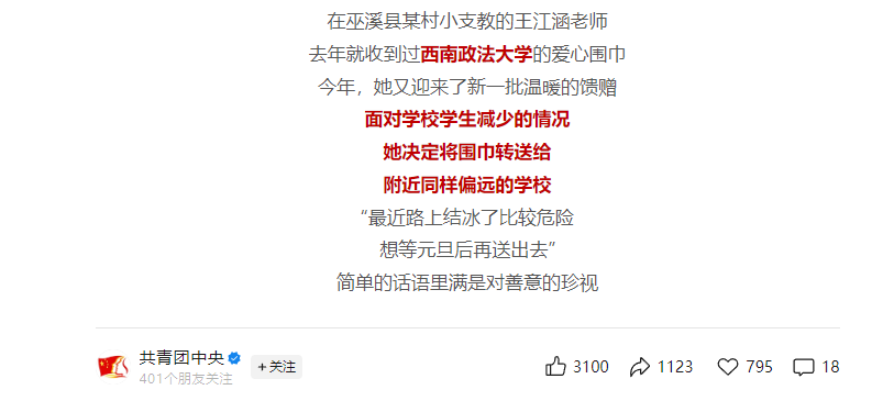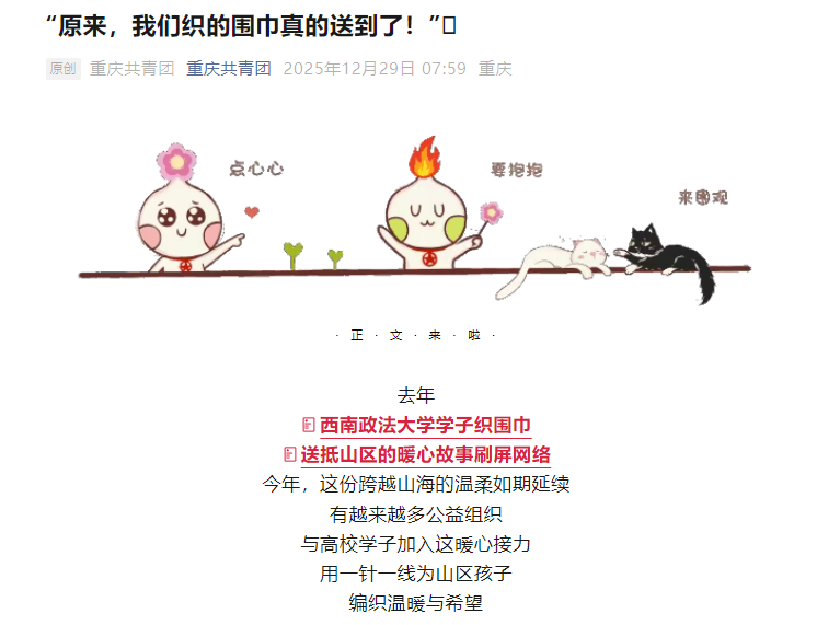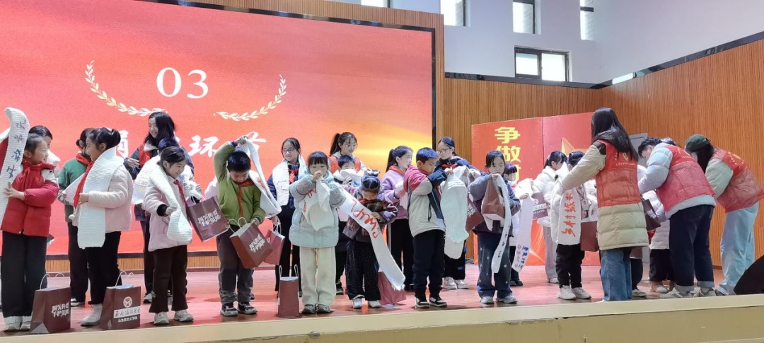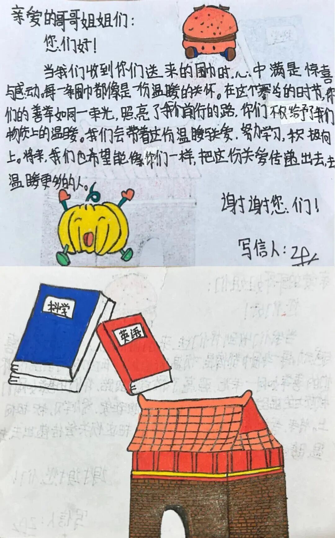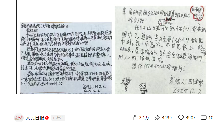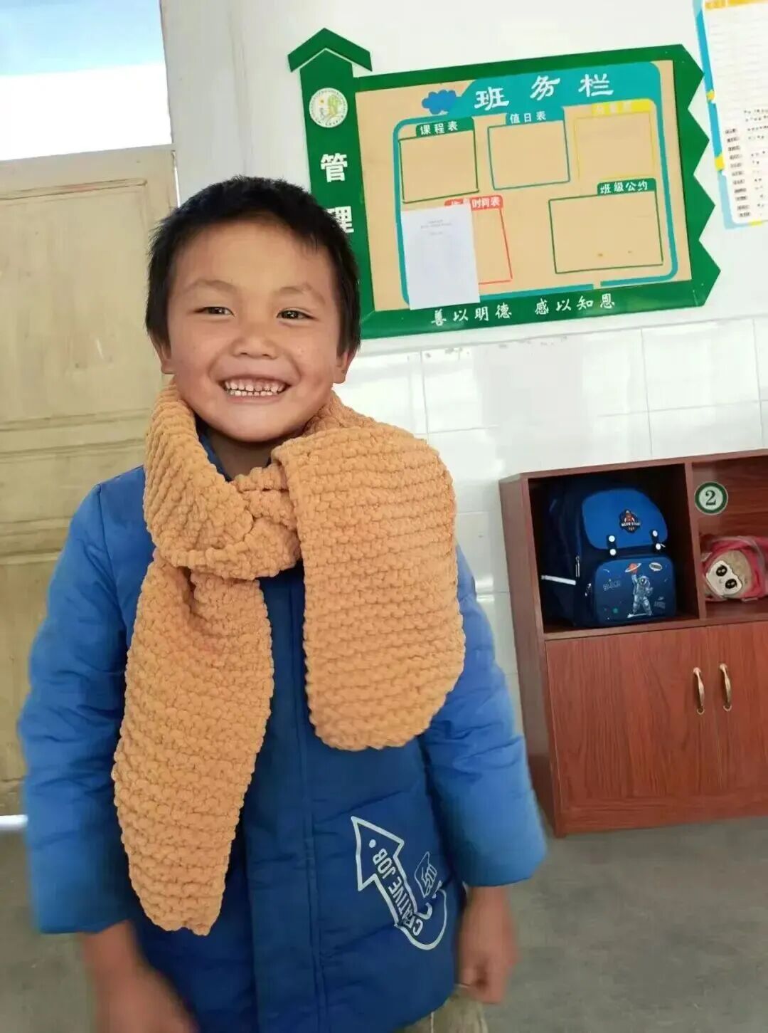 “大哥哥大姐姐,你们亲手编织的围巾我们收到了!”