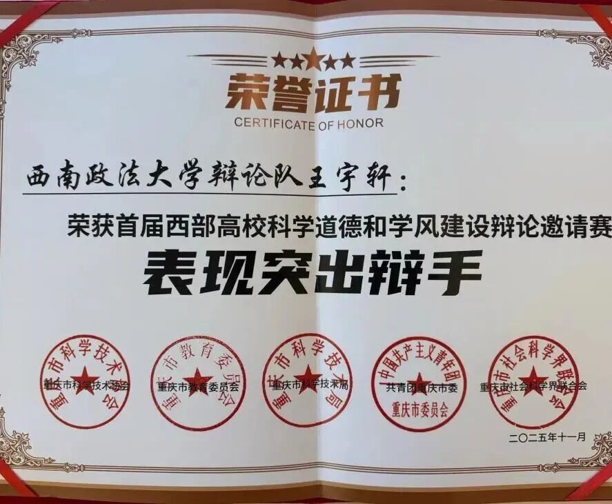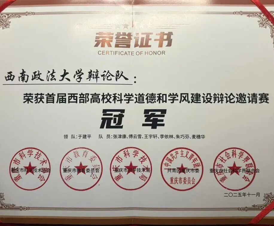 西政辩论队荣获首届西部高校科学道德和学风建设辩论邀请赛冠军